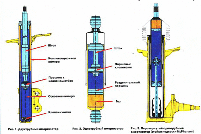 Существует несколько типов амортизаторов, каждый из которых имеет свои особенности и предназначение: