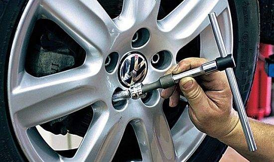 Очень эффективным способом считается протяжка. Суть метода заключается в следующем: все болты кроме хитрого затягиваются с максимальным усилием (важно не переусердствовать и не свернуть головки), затем колесо вывешивается. Часто после того, как все болты затянуты, появляется возможность выкрутить секретку без особого усилия.