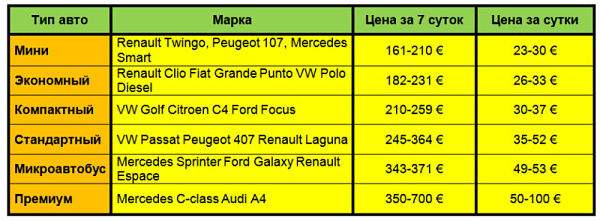 В Италии «Форд Фиеста», вполне приемлемый для поездок вчетвером, стоит 25 евро в день. Комфортабельный «Мерседес Е-класса» можно взять напрокат за 60 евро.