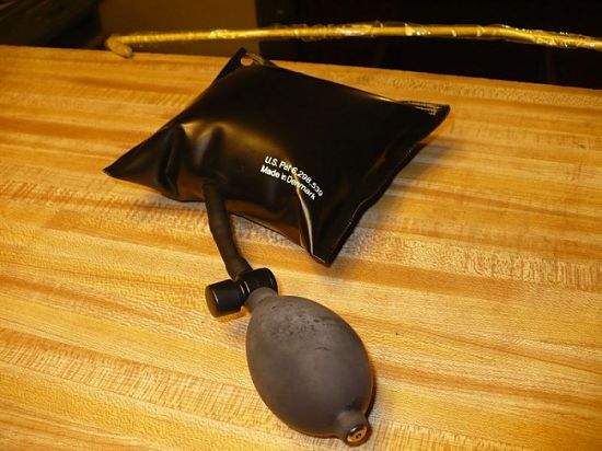 Кстати, вместо деревянного клина, который следует вбивать с легкими ударами кулаком или молоточком, можно использовать специальное устройство, предназначенное для аккуратного отжимания капота или двери автомобиля. Его цена составляет около 500 рублей. Это устройство представляет собой небольшую резиновую подушечку, которую накачивают воздухом. Благодаря создаваемому давлению оно образует небольшую щель между кузовом автомобиля и дверью. С помощью специального насоса, который идет в комплекте с подушкой, можно регулировать давление, увеличивая или уменьшая щель до нужных размеров.