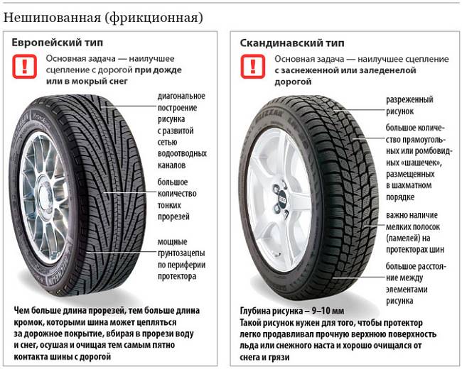 - кроме этого они могут отличаться размерами, составом резинового материала, конструкцией корда, рисунком протектора и ламелей и т.д.