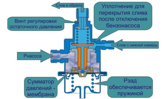 | Клапан сброса | Открывается для сброса избыточного давления топлива обратно в бак. | Механический клапан, который открывается, когда давление топлива превышает заданное значение, преодолевая сопротивление пружины. |