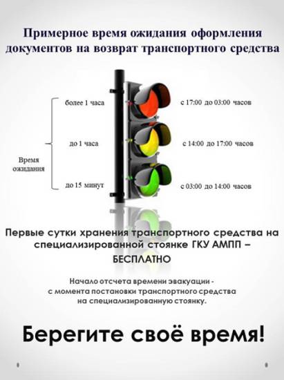 С 24 июля 2016 года москвичи могут забирать задержанные автомобили со специальной стоянки без предварительной оплаты за эвакуацию и хранение. Вместо этого им выдается квитанция с суммой, которую нужно оплатить в течение двух месяцев с момента получения автомобиля. Если транспортное средство находилось на стоянке более суток, плата за хранение начисляется за каждый час. Если срок хранения превышает шесть месяцев, начисление часов останавливается, и возврат автомобиля возможен только по решению суда.