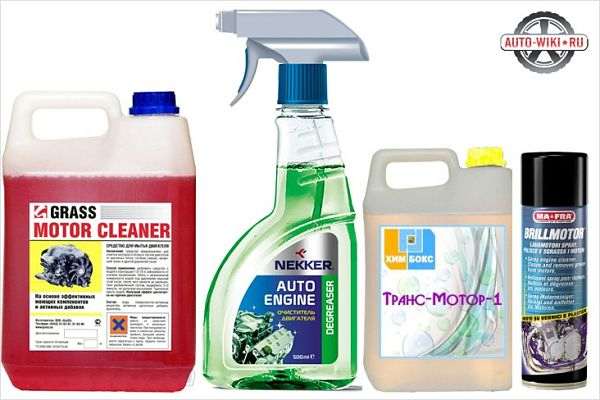 Обратите внимание и на то, что средства, предназначенные для очистки от загрязнений кузова автомобиля, для мойки двигателя не годятся. Дело в том, что большинство из них имеют в основе кислоту, которая может повредить металлические части двигателя.