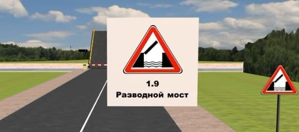 Устанавливается за 150-300 метров до объекта, предупреждает о приближении к разводному мосту или паромной переправе и повторяется не ближе 50 м до них.
