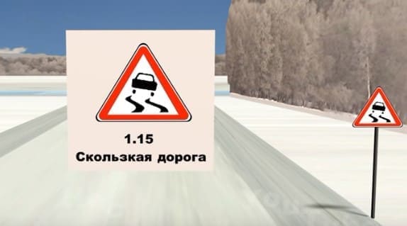 Назначение знака 1.15 – предупреждение об участке дороги, где в силу определенных обстоятельств (метеоусловия, особенности дорожного покрытия, сезонные явления, авария техногенного характера) пониженное значение коэффициента сцепления дороги с колесом автомобиля.