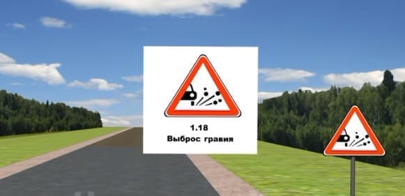 Знак 1.18 предназначен для предупреждения водителей о том, что они приближаются к участку дороги с ненадежным покрытием. Частицы гравия или щебня, выбрасываемые из-под колес встречных и попутных автомобилей, могут серьезно повредить кузов, фары и стекла транспортных средств.