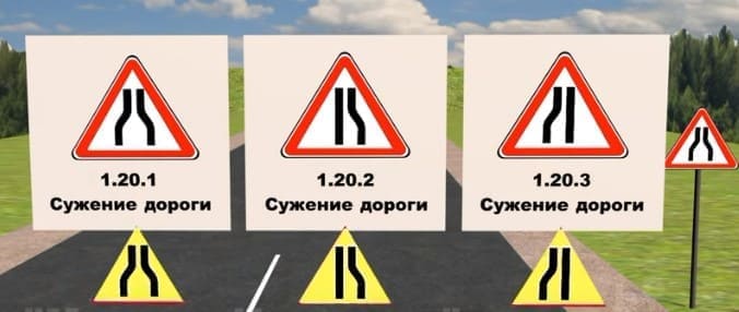 Наличие знаков 1.20.1 – 1.20.3 обязывает водителей соблюдать правила перестроения.