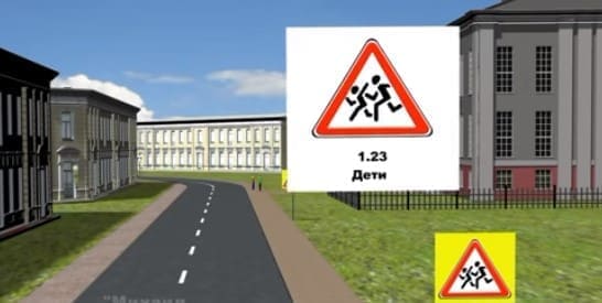Знак 1.23 сообщает о приближении к учреждению, большинством посетителей которого являются дети: детские сады, школы, центры детского творчества, Водитель обязан быть готов к внезапному появлению детей перед его транспортным средством.