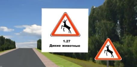 Этот знак устанавливается в местах пересечения автомагистралей с миграционными путями диких животных, обитающих в близко расположенных к дороге лесах, заповедниках и охотничьих хозяйствах. Протяженность опасного отрезка указывается на информационной табличке.