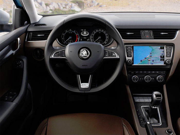 Что касается интерьеров, то здесь также наблюдается схожесть с экстерьером. Дизайн салона Октавии довольно строгий и даже немного скучноватый, хотя он укомплектован современными технологиями.
