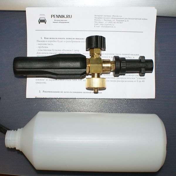 Оба эти устройства не входят в комплект минимойки и приобретаются отдельно. Без них бесконтактную мойку произвести невозможно, потому, что именно они производят пену.